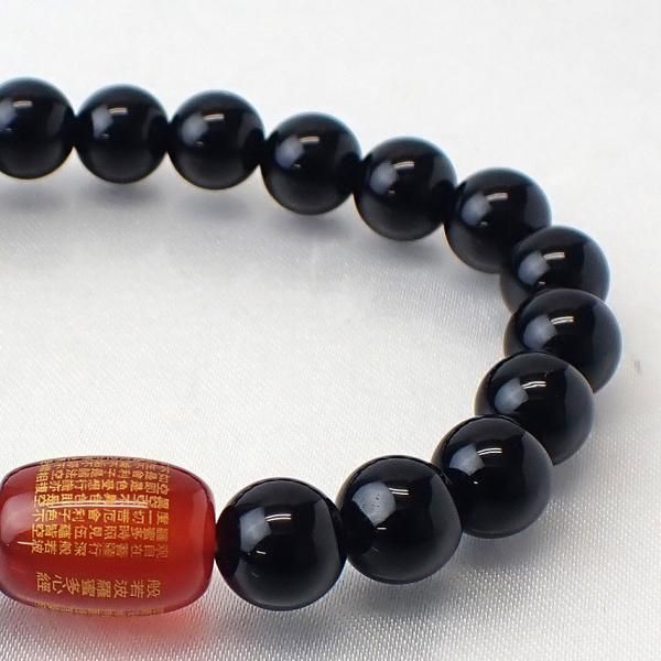 レッドアゲート(般若心経) & オニキス デザインブレスレット 内周15cm [X8354]