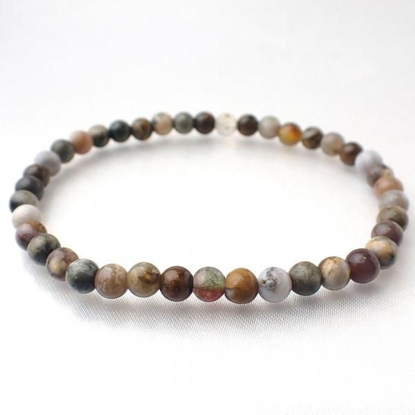 オーシャンジャスパー ラウンド 4 - 4.5mm 内周15cm ブレスレット [XD0069]
