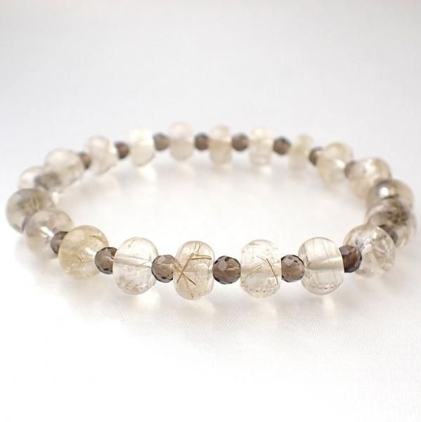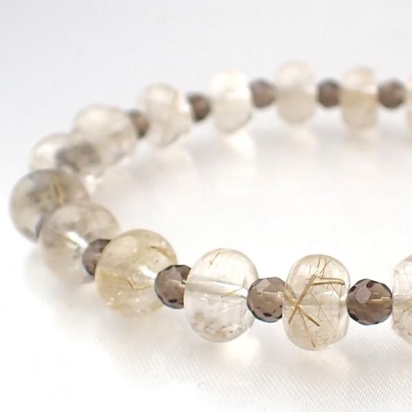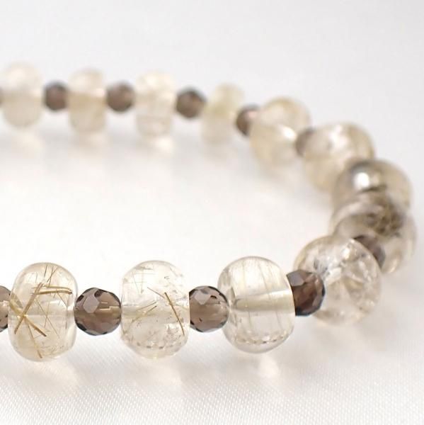 ○スモーキークォーツ ラウンドカット 約4mm・手首サイズ(内周):約15 - 15.5cm
