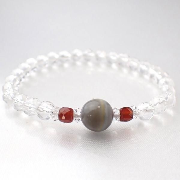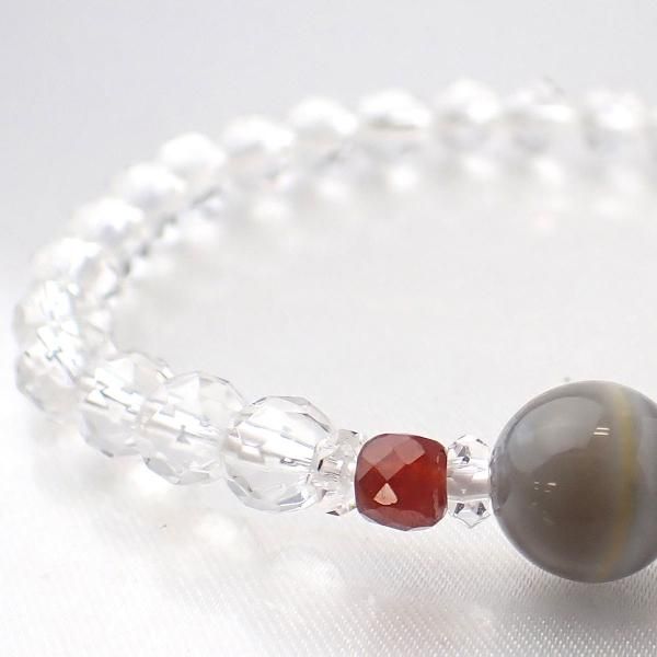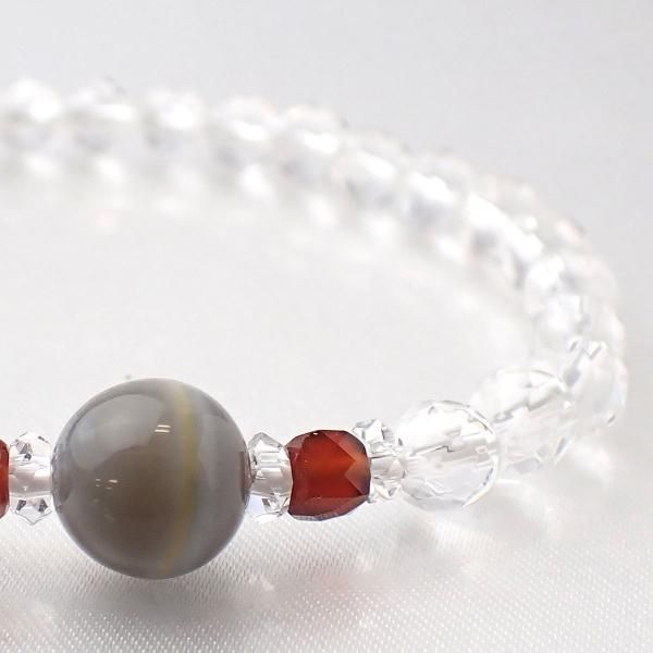 チベットメノウ & 水晶 & ガーネット デザインブレスレット 内周15.5cm [XE0018]