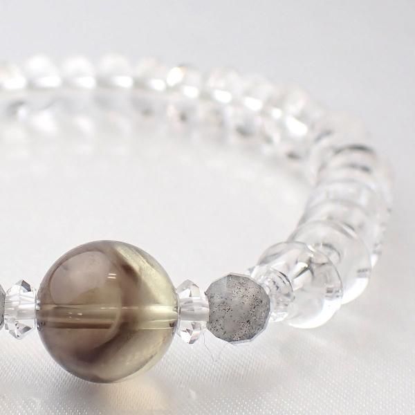 シトリンファントム 11.5mm & ラブラドライト & パールバティー水晶 デザインブレスレット 内周16cm [XE0015]