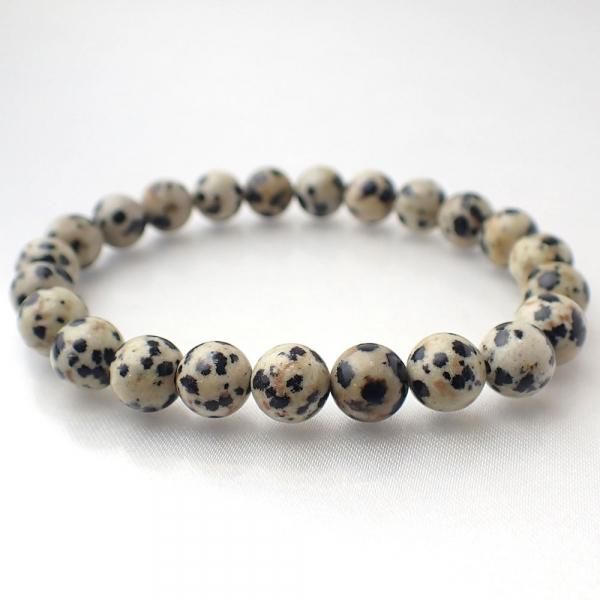 ダルメシアンジャスパー ラウンド 8mm 内周15.5cm ブレスレット [XD0235]