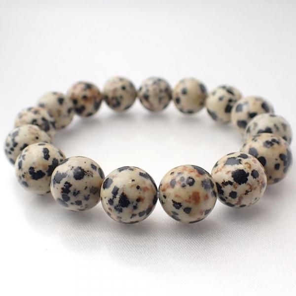 ダルメシアンジャスパー ラウンド 12mm 内周15 - 15.5cm ブレスレット [XD0237]