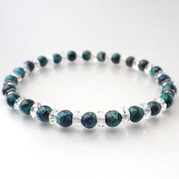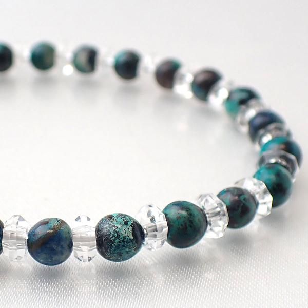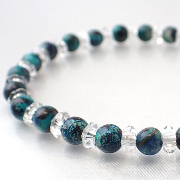 クリソコラ & 水晶 デザインブレスレット 内周15.5cm [XE0023]