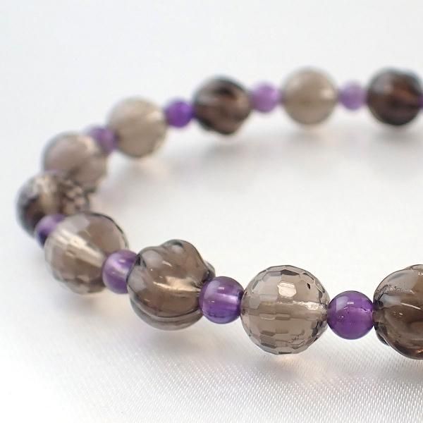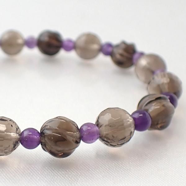 スモーキークォーツ & アメジスト デザインブレスレット 内周15cm [XE0029]