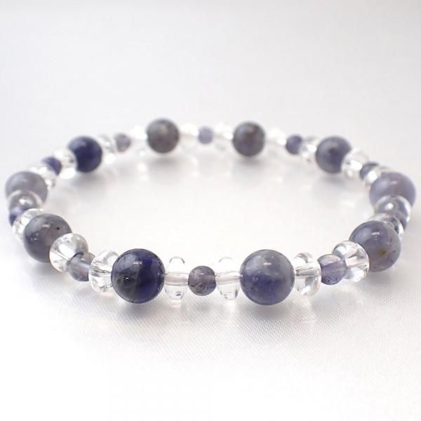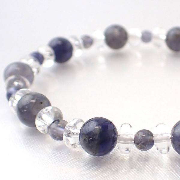 アイオライト & 水晶 デザインブレスレット 内周16.5cm [XE0030]