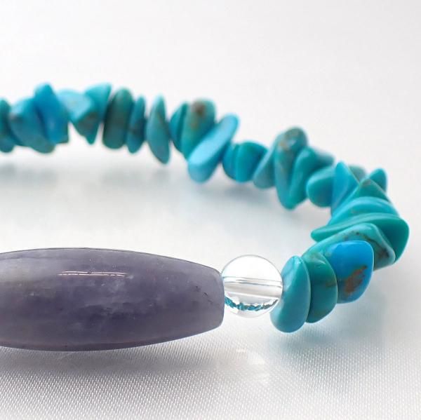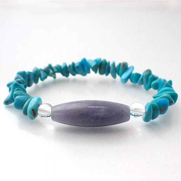アイオライト & スリーピングビューティーターコイズ デザインブレスレット 内周15cm [XE0037]