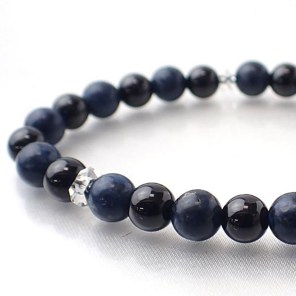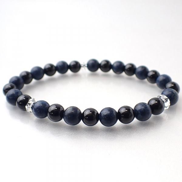 ブルースピネル & ブラックスピネル デザインブレスレット 内周14.5cm [XE0038]