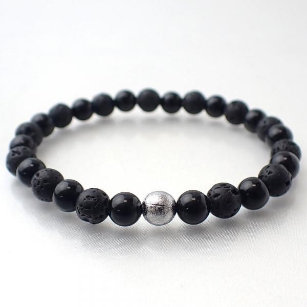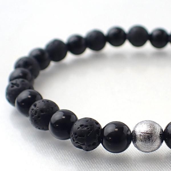 ギベオン & ラバストーン & テクタイト デザインブレスレット 内周15cm [XE0040]