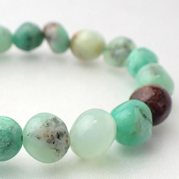 クリソプレーズ タンブル 8 - 10mm 内周15cm ブレスレット [XD0282]