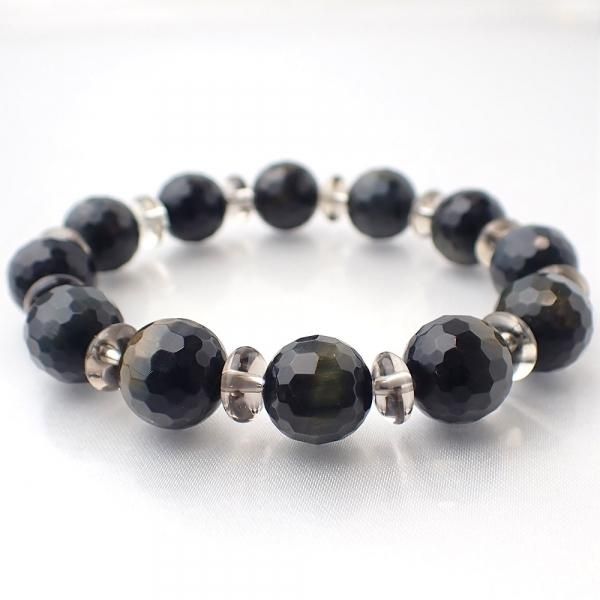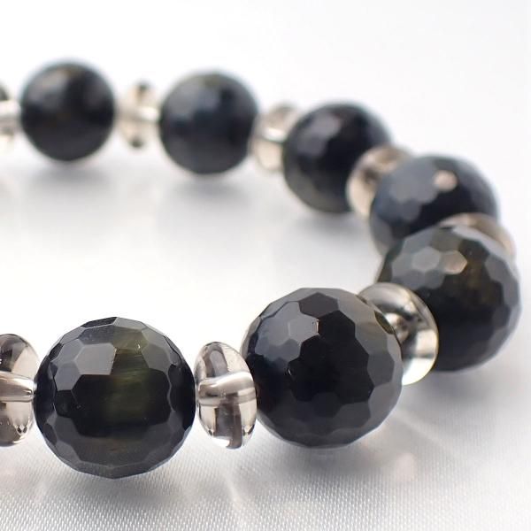 ウルフアイ & スモーキークォーツ デザインブレスレット 内周15.5cm [XE0049]