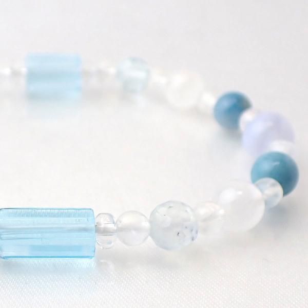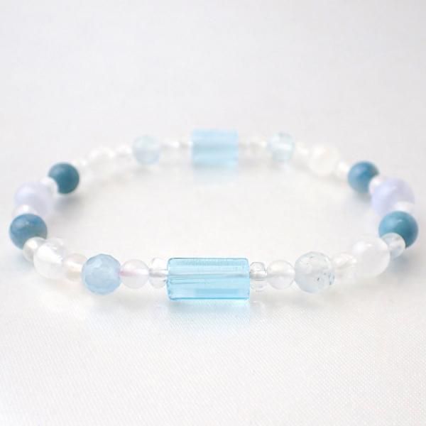 トパーズ & アクアマリン& ムーンストーン & ブルーカルセドニー & ムーンクォーツ デザインブレスレット 内周15cm [XE0062]
