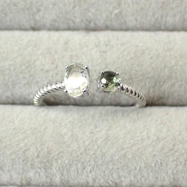 リビアングラス & モルダバイト 指輪(フリーサイズ) [R0120]