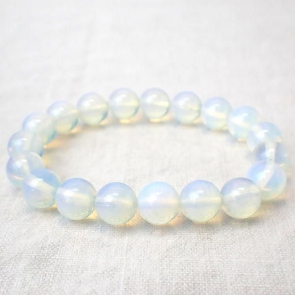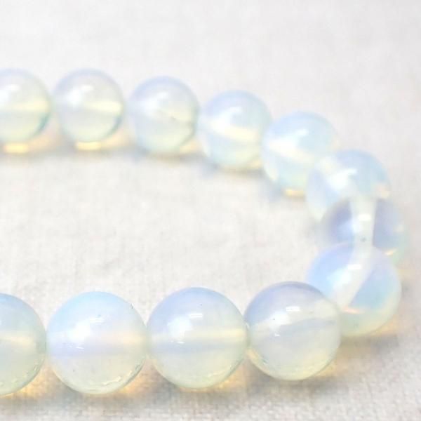 天然石ではなく人工ガラス。オパールの光彩を模して作られ、均一で滑らかな色合いが特徴。耐久性が高く取り扱いやすい。